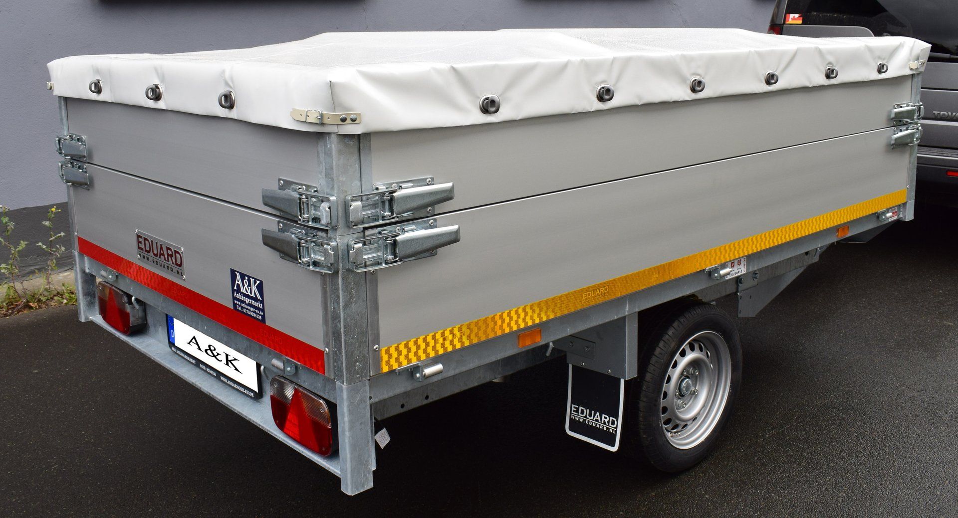 2. Flachplane für Eduard Anhänger 2618 (1 und 2-Achser) inkl. 20x Drehverschlüsse ODER 10x Spannbänder mit S-Hacken
