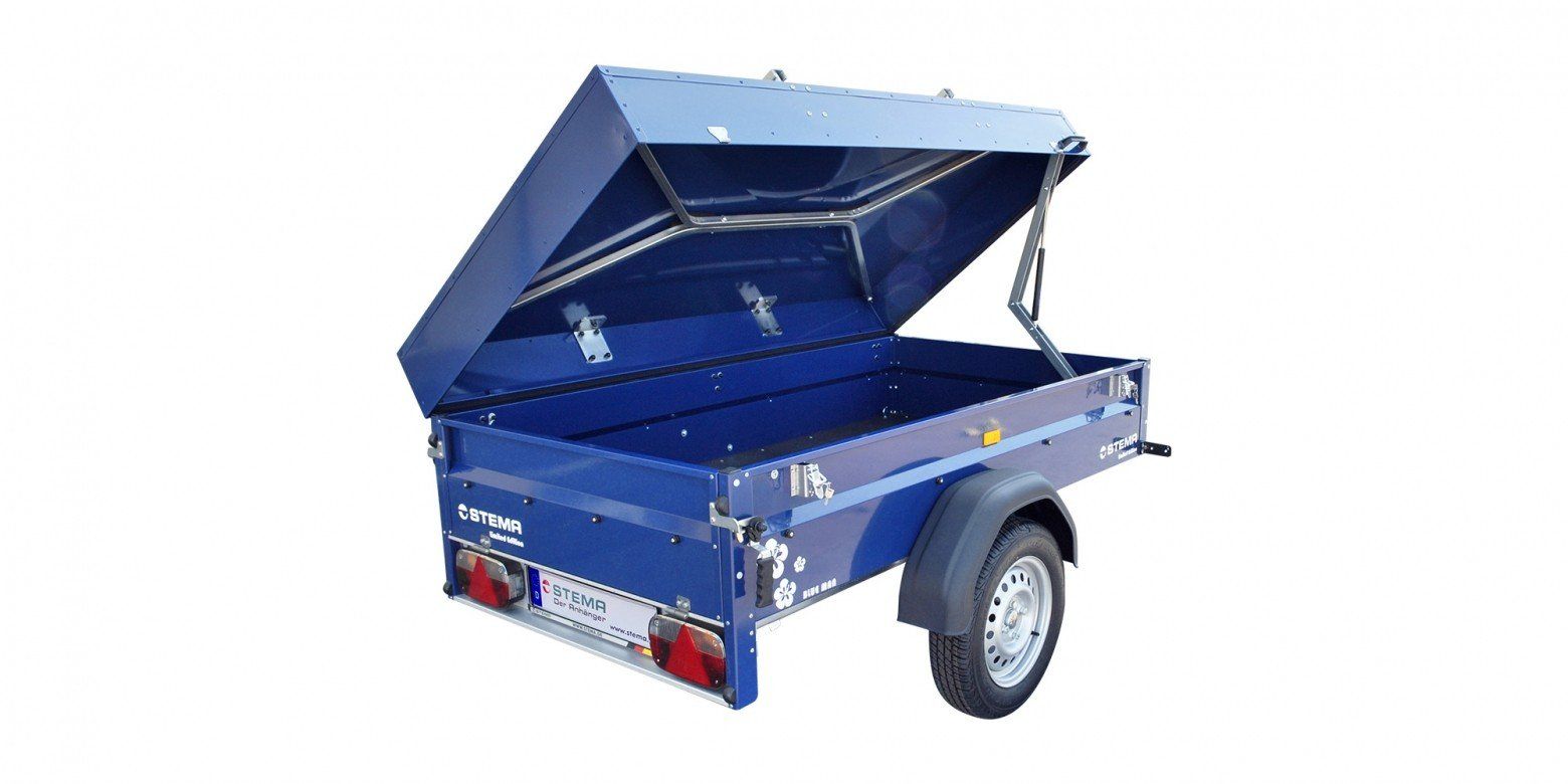 Stema Blue Man bis 850 kg gebremstDer KFZ-Brief kann nach dem Kauf und nach erfolgter An-/Bezahlung auf Wunsch vorab zugesandt werden,damit der Anhänger für die Abholung angemeldet werden kann.Anhängerbesichtigung nach Absprache.